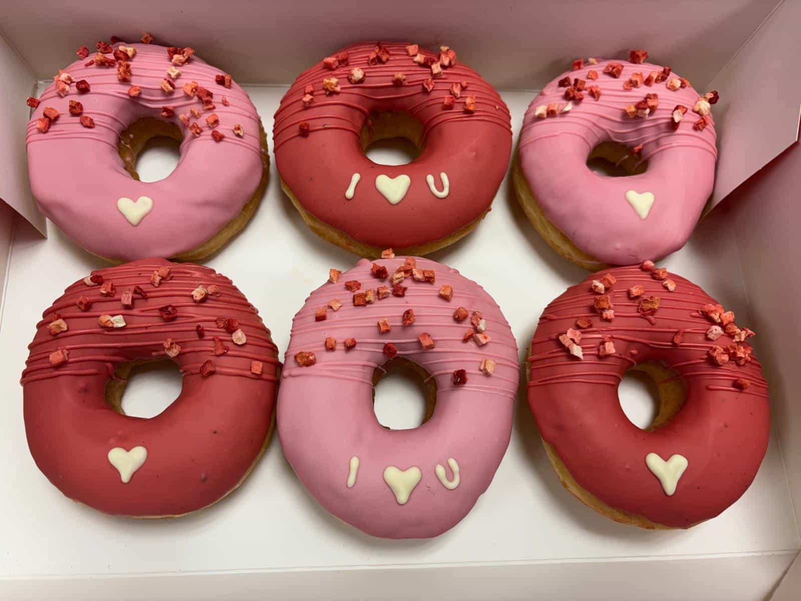 Valentinstag 6er Donutbox mit Erdbeerstreusel