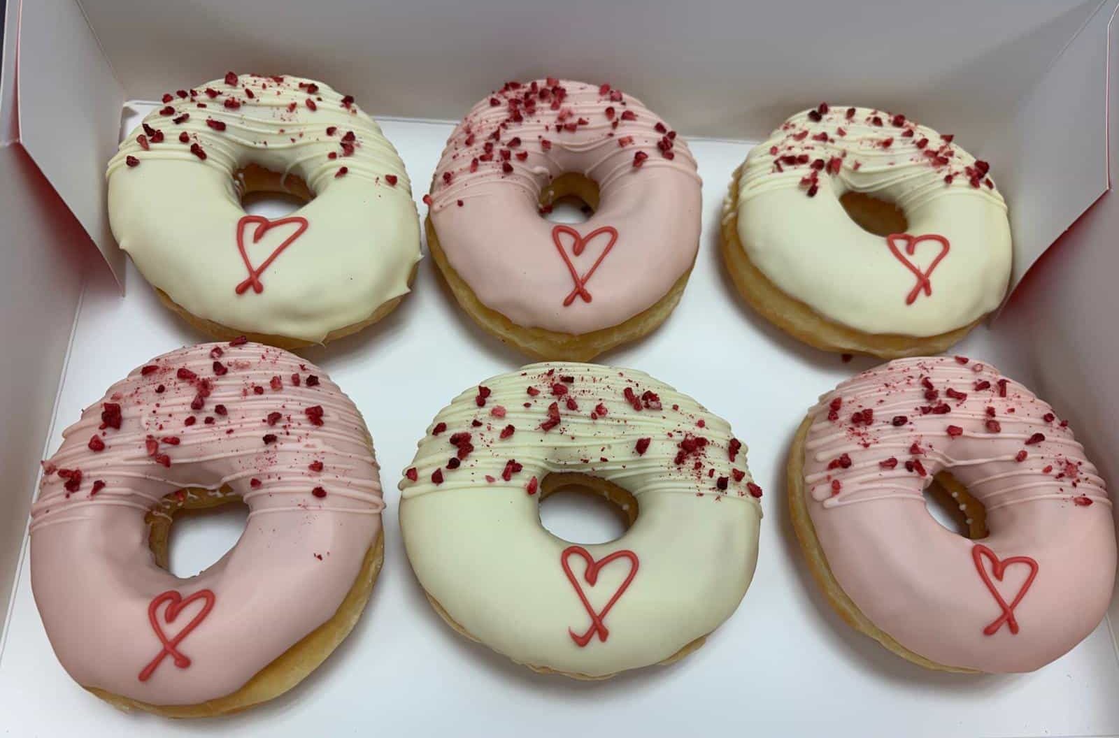 Valentinstag 6er Donutbox mit Himbeerstreusel